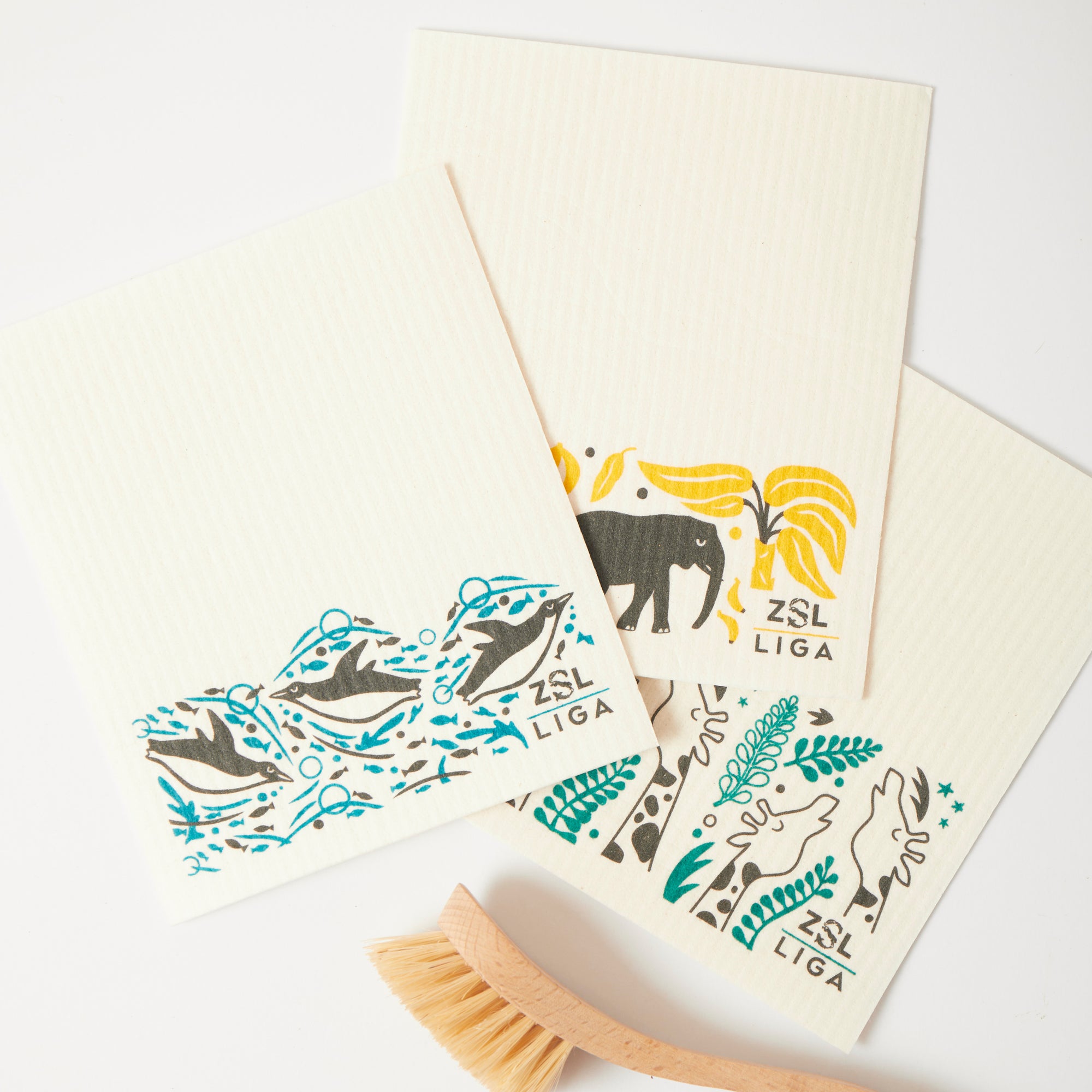 Our award winning eco dishcloths - 100% compostable and easy to wash - made from cellulose and waste cotton and they do a great job cleaning.
